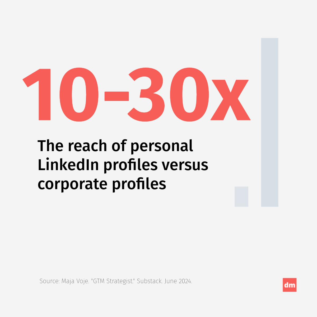 Following the trend of buyers trusting employees more than the brand themselves, the reach of corporate profiles is being dwarfed by the reach of individual profiles.