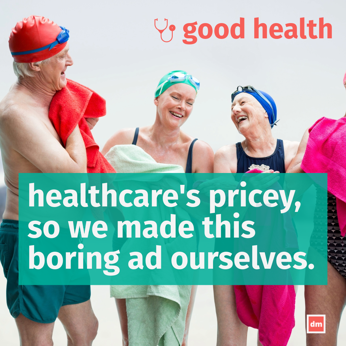 Along the expressway near my neighborhood are countless outdoor ads promoting local gigantic players in the healthcare system. Many promote affordability. Many also rely on a familiar visual: a lifestyle image of individuals immersed in the joys of daily life (which often, interestingly, include bodies of water).